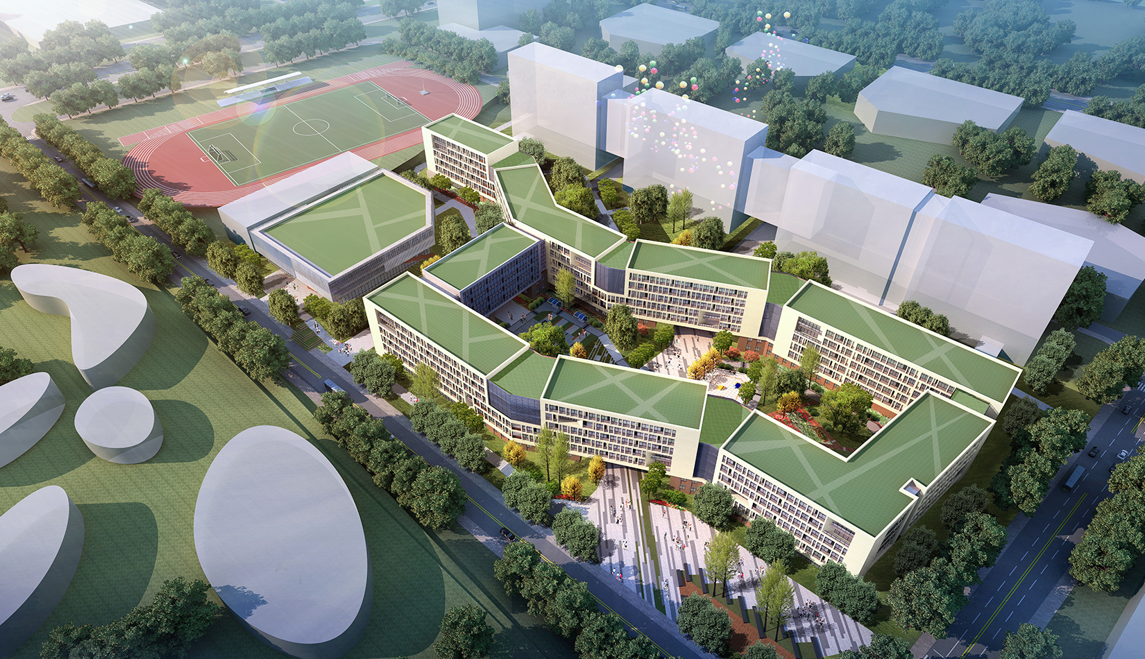 西區(qū)生活區(qū)順應(yīng)歐式建筑布局,采取 軸線景觀 設(shè)計手法,體現(xiàn)規(guī)整與有序的園林藝術(shù)特色。結(jié)合臺地景觀的設(shè)計,營造大氣的室外空間。庭院設(shè)計主要以規(guī)整式布局為主,另在主樓后部林區(qū)采用自然式布局,做到規(guī)整與自然式相結(jié)合,在山水之間為學(xué)生提供良好的學(xué)習(xí)環(huán)境。