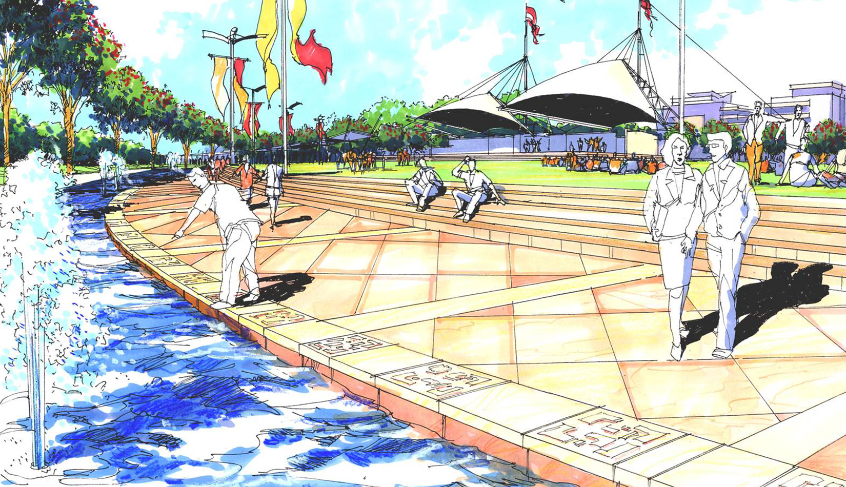 本著“文化著陸于自然”、“邊界突出聯(lián)系”的設(shè)計(jì)理念,規(guī)劃將灣島全線(xiàn)自西向東分為濱海運(yùn)動(dòng)休閑、親水廣場(chǎng)、公共藝術(shù)公園、人與自然公園和碼頭休閑娛樂(lè)5 個(gè)景區(qū),為基地北側(cè)的城市功能區(qū)乃至黃島區(qū)提供了一片高品質(zhì)的、現(xiàn)代濱海城市休閑景觀帶,增強(qiáng)區(qū)域的軟環(huán)境競(jìng)實(shí)力。