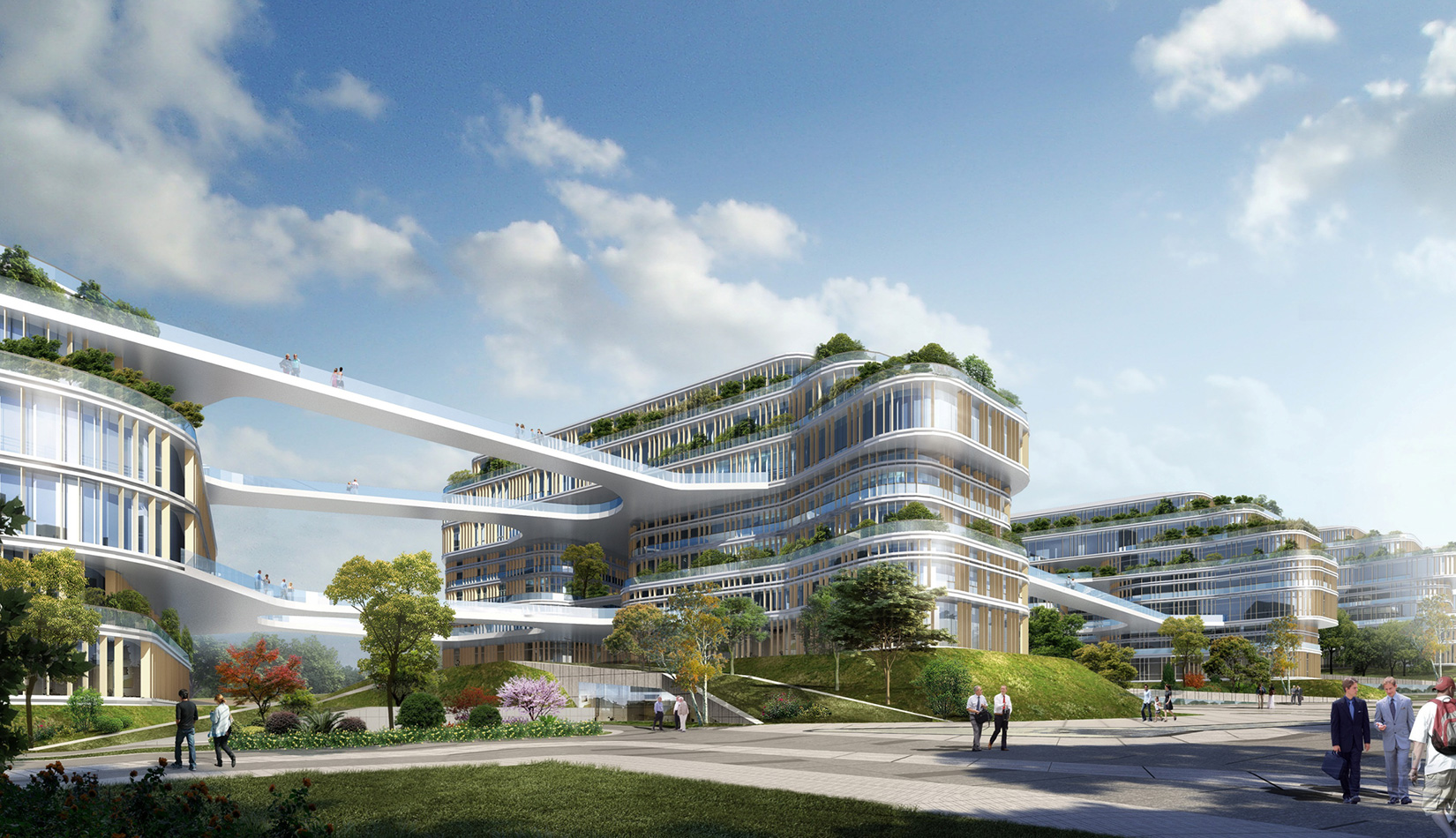 該項目以“流動的星云”作為設計理念,順應地形走向,溝通“山”“水”關系。
