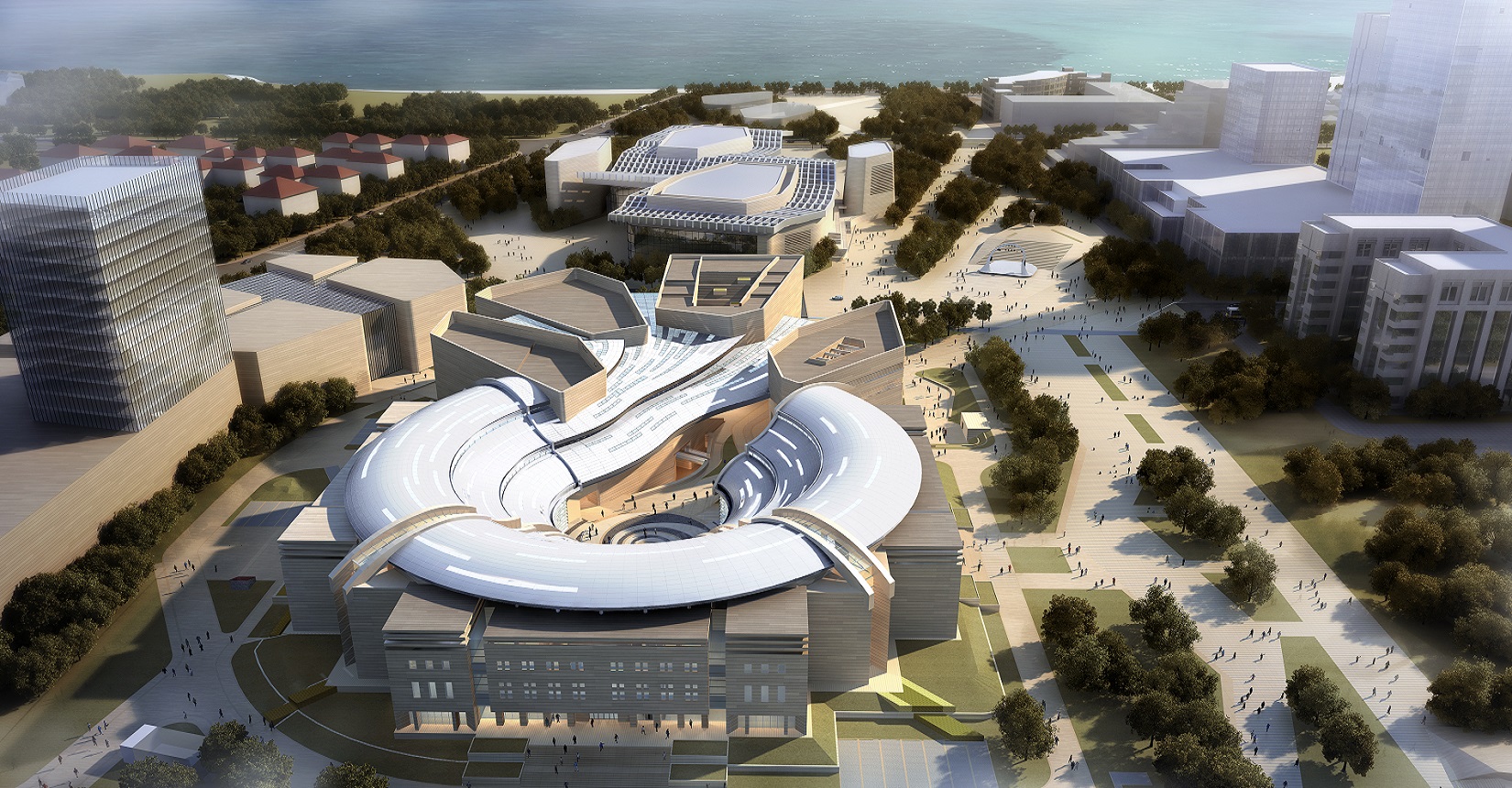 該項(xiàng)目由我院聯(lián)合中國建筑設(shè)計(jì)研究院崔愷院士團(tuán)隊(duì)共同打造。設(shè)計(jì)方案以“嶗山石花、海涌浪激”的意向?yàn)榛{(diào),形成“浪涌石開、時(shí)空留痕”的文化景象。